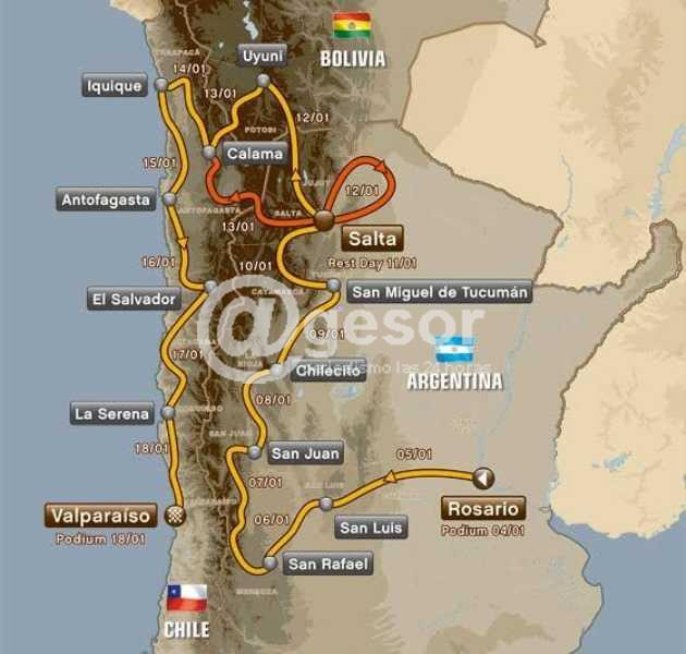 La tercera etapa, que se disputará este martes, tendrá 373 kilómetros cronometrados para las motos entre San Rafael y San Juan y 301 para los coches y camiones.