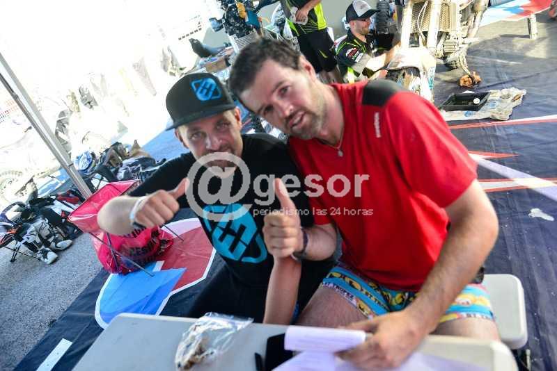 "Fue un día complicado. Enlace de 300km. Especial de 350 y enlace final de60. Alas 11.30, en el km 255 de la especial me "como" un barranco de arena y rompí la rueda delantera. Estuve horas para salir de las dunas caminando y en camioneta, además tenía señal de a ratos en mi celular y se me complicaba para llamar a los mecánicos. Al final pude conseguir la rueda de repuesto, pero llegué a donde estaba la moto a las 19.30 arreglar todo y arrancar otra vez. La organización ya estaba avisando al rastrillo porque habían encontrado la moto abandonada. Los pude convencer que me dejaran seguir. Termine de poner la rueda a las 21 y arranque los últimos100 kmde dunas en la nochecita. Pero en la mitad se me corto la corriente, debe ser problemas de la caída. Trate de arreglar pero no pude. Ya se había hecho de noche y no tenía como hacer puente. Camine un rato por las huellas para atrás y me encontré unos mendocinos en camioneta en un valle de las dunas. Me sacaron de ahí, me convidaron "chori" y muuucha agua. Llegué al campamento a la 1 de la mañana. Lamentablemente hasta acá llegué. Hoy no me dejan largar porque la moto la levantan con el rastrillo, son las reglas. Lo malo es que a la primera distracción el error es muy caro, por suerte esta vez fue la moto y no yo. Quería agradecer a todas las personas y a las empresas que me ayudaron. Lamento decepcionarlos. Mi objetivo era llegar pero no lo hice. A tomar fuerza para la revancha".