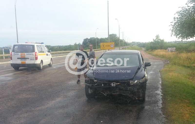 Un vehículo matriculado en la República Argentina en el que se trasladaban dos hombres de nacionalidad argentina mayores de edad, por causa que se tratan de establecer, colisionó contra un guardaray salvando peligrosamente sus vidas.