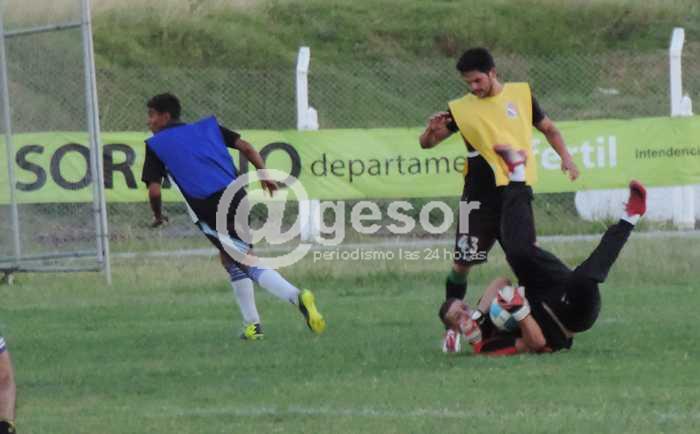 Se enfrentaron titulares y suplentes. Los primeros, de chaleco amarillo, formaron con José Luis Manzanares, Enzo Polero, Mario González, Enzo Morales y Nicolás Barrios; Teodoro Luna, Raúl Osores, Alain Battó y Gastón Gordienko, Edison Gómez y Pablo Vera.