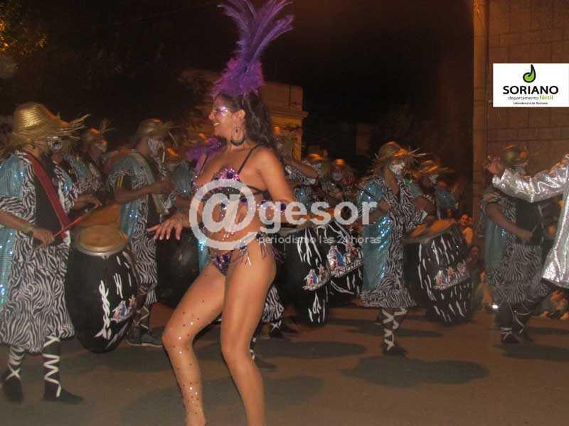 Con una gran bandera con la imagen de Nelson Mandela la comparsa “Ecos de Tambores” de Carmelo contagió al público mercedario. La imagen de Madiba y el ritmo de las lonjas fue el argumento utilizado por los candomberos carmelitanos en este desfile de llamadas.