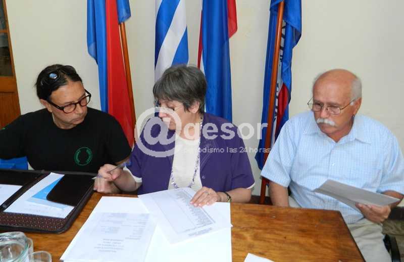 En el Hall de la Biblioteca Municipal se cumplió la reunión de la Mesa Permanente, siendo encabezadas las deliberaciones por la Presidenta Edila Silvia Cabrera Luzardo, el Secretario Edil Daniel Chiesa Curbelo, ambos del Frente Amplio y el Tesorero Edil Ary Ney Sorondo del Partido Nacional.