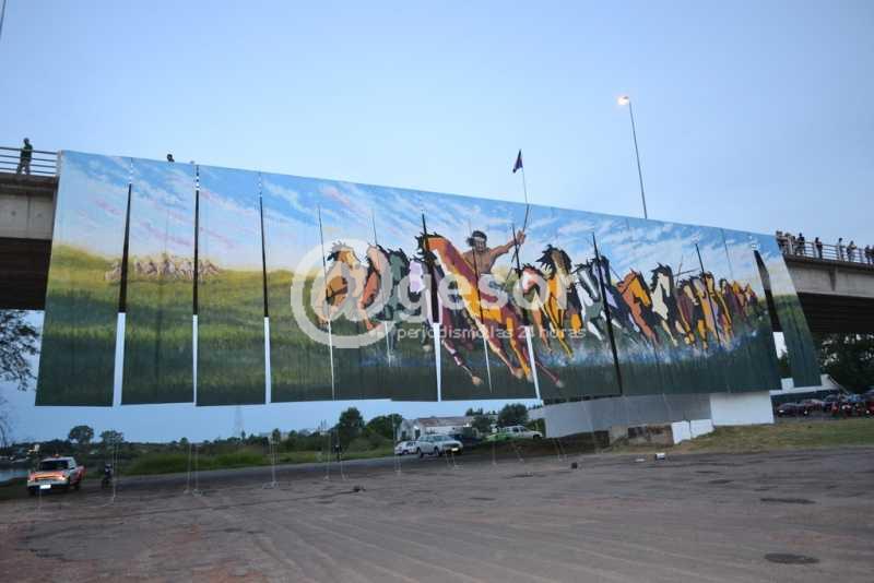 Desplegando un enorme mural en el Puente Líber Seregni, culminó la celebración del 203 aniversario del Grito de Asencio. Como informáramos la obra insumió varios días de trabajo y alrededor de 400 personas pintándolo, o abocados a su confección o los detalles que posibilitaron su armado.