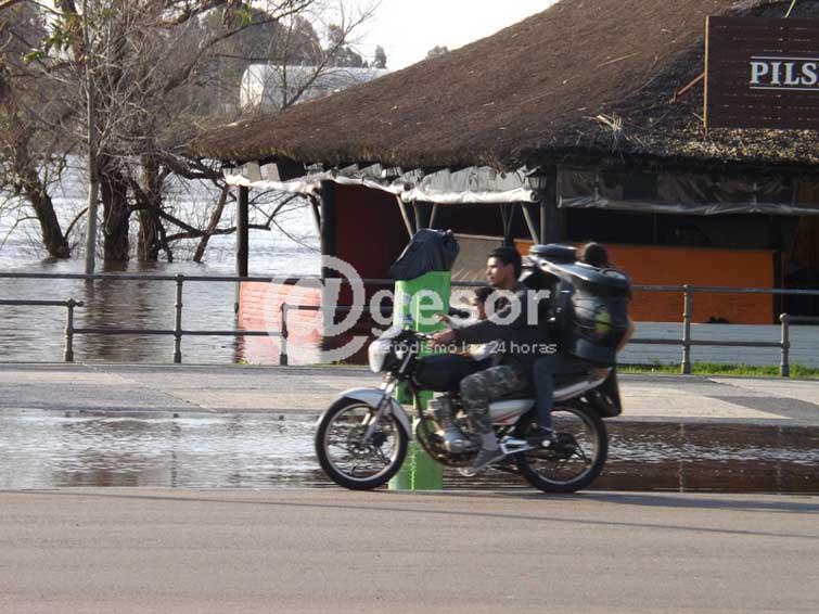 El río Negro continúa creciendo frente a la ciudad de Mercedes, donde ya cubre gran parte de la Rambla Batlle y Ordóñez.