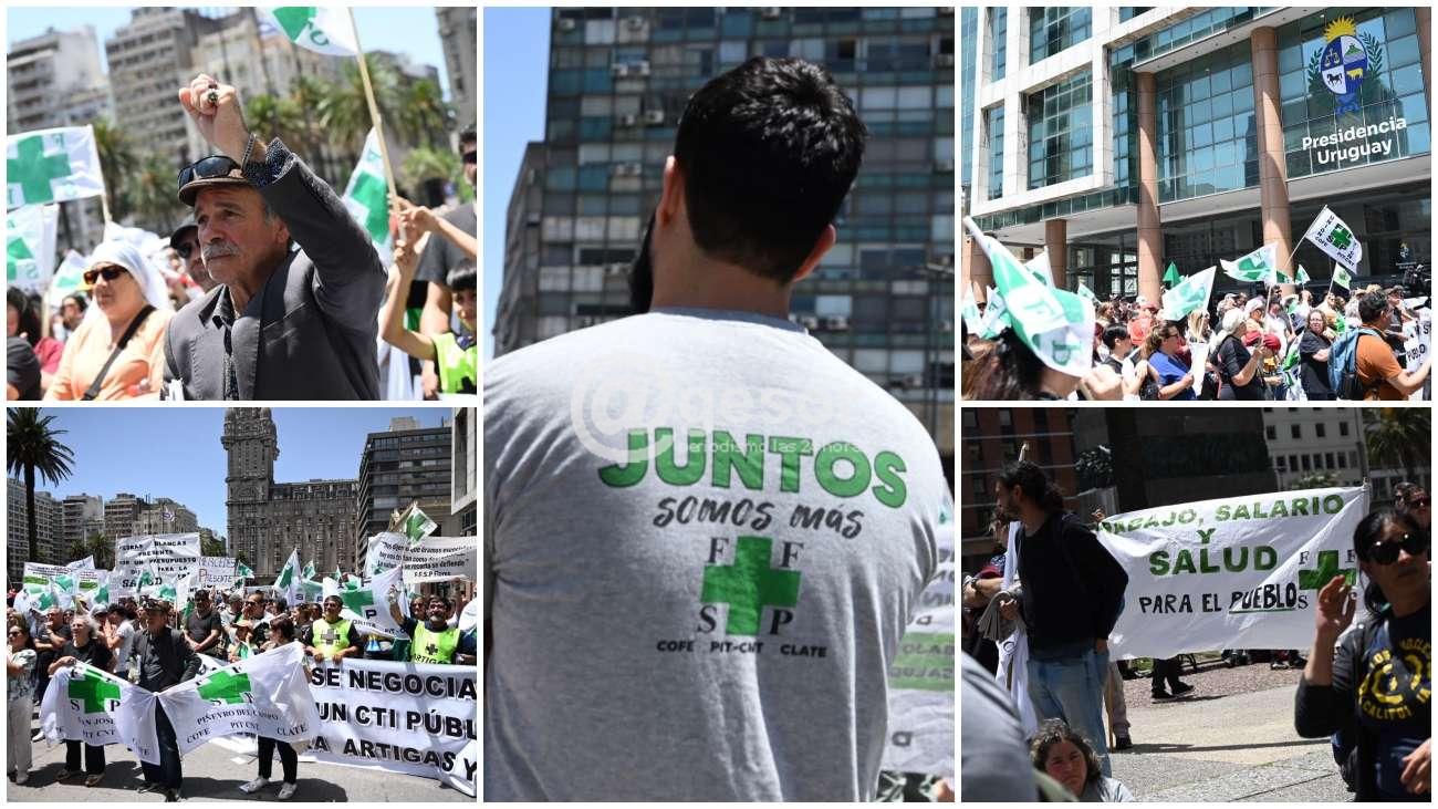 La Federación de Funcionarios de la Salud Pública (FFSP) realizó este martes una manifestación frente a Torre Ejecutiva para reclamar avances en materia salarial, mejorar las condiciones laborales y de seguridad del personal, y regular la tercerización en ASSE. Asimismo, manifestaron la necesidad de generar una...