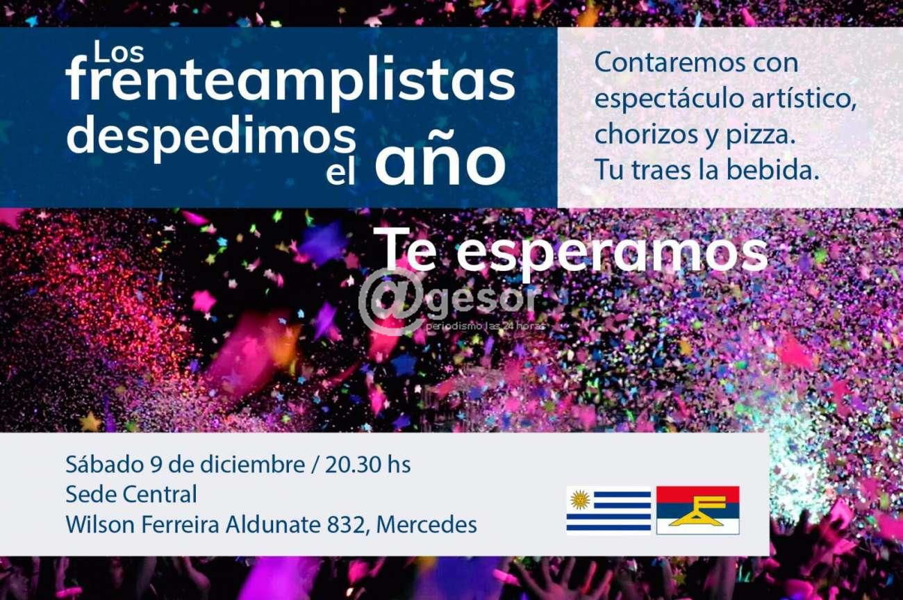 Este sábado 9, los FRENTEAMPLISTAS DE SORIANO, despedimos el año... 20.30 horas, en nuestra sede central...Habrá espectáculo artístico y algo para compartir...