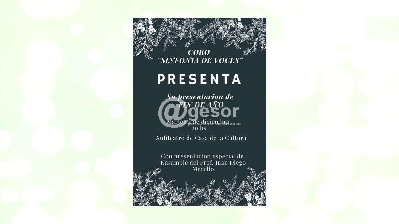 Este lunes 24 de noviembre se realizará el concierto de clausura de año del Coro Infantil y Coro Juvenil Departamental. La actividad se realizará en Teatro 28 de Febrero de Mercedes, a partir de las 20,30 horas....