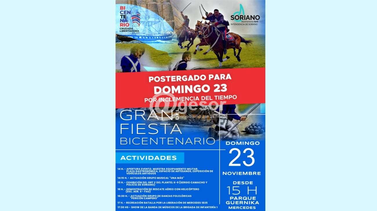 La organización de la “Fiesta del Bicentenario” definió posponer el evento, trasladándolo para el domingo 23, con los mismos detalles.