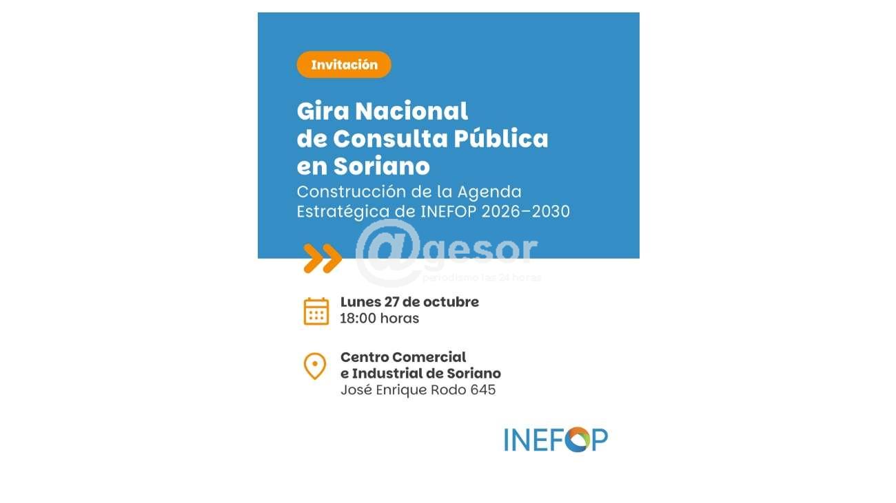 El Instituto Nacional de Empleo y Formación Profesional (INEFOP) inicia su Gira Nacional de Consulta Pública para la construcción de la Agenda Estratégica 2026 - 2030. Autoridades del Instituto visitarán el departamento de Soriano el lunes 27 de octubre. Se prese...