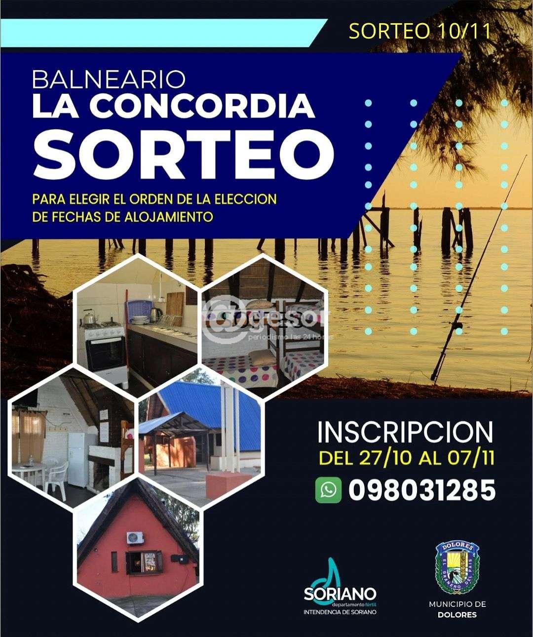 Desde el 27/10 al 07/11 comienzan las inscripciones a las cabañas del balneario La Concordia. Desde el Municipio de Dolores se informa que se cuenta con 9 cabañas para 4 personas cada una, por $ 900 cada día Los interesados deben mandar Whatsapp al 098031285 con su nombre completo y Cédula de Identidad o...