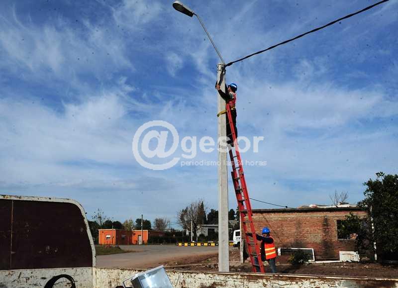 La Intendencia de Soriano viene desarrollando intensos trabajos en Dolores con la finalidad de rehabilitar el alumbrado público que sufrió daños cuantiosos a causa del tornado del 15 de abril.