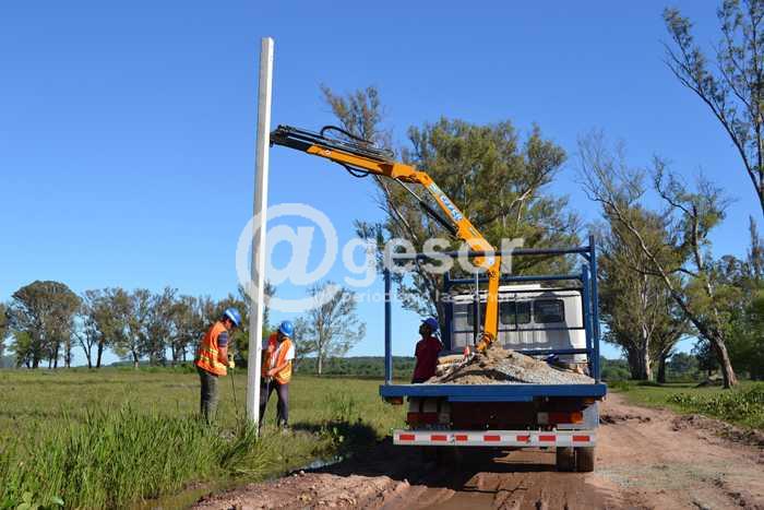 La Intendencia de Soriano trabaja en la extensión de la red del alumbrado público en el Municipio de Cardona, ampliando la iluminación en un tramo de la continuación de calle Artigas, desde la ruta 2 hasta el Parque Cazeaux.