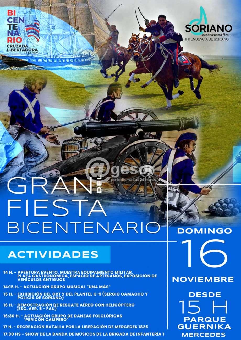 Gran Fiesta del Bicentenario este domingo 16 en parque Guernica de Mercedes desde las 15.00 horas