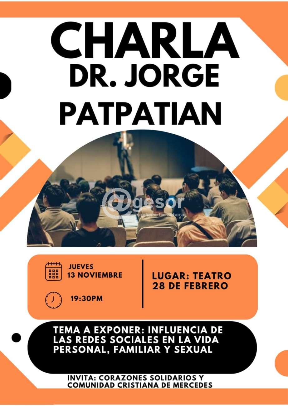 Este jueves 13 de noviembre en el Teatro 28 de Febrero a las 19.30 horas, con la organización de "Corazones Solidarios y Comunidad Cristiana de Mercedes", se llevará a cabo charla denominada "Influencia de las redes sociales en la vida personal, familiar y sexual", la que estará a cargo del Dr. Jorge Patp...